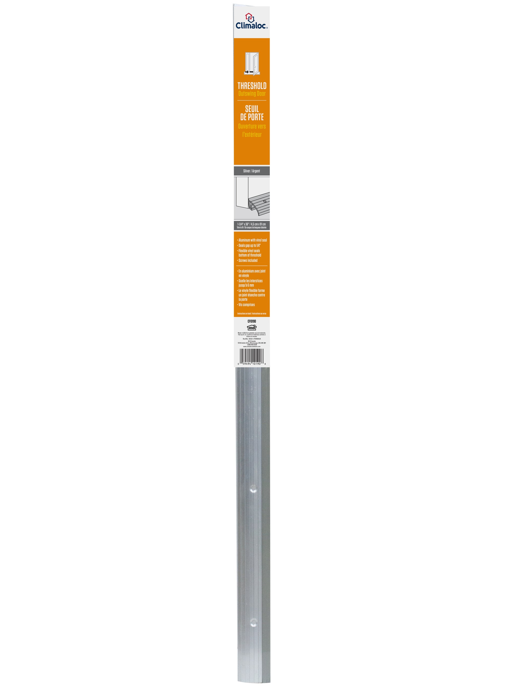 The Climaloc Aluminum Mini Low-profile Outswing Door Threshold features a vinyl seal for protection from drafts, moisture, dust, and insects. The bumper-style design is specifically made for outswing doors. As the door swings shut the vinyl bumper insert creates a seal on the side of the door. The threshold can be used to install with a new door or to replace an existing threshold. All of the hardware needed for installation is included. Before installation, the threshold can be cut to a desired length by using a hacksaw.
