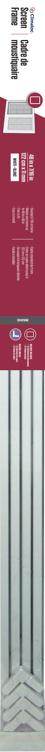 The Climaloc Aluminum Screen Frame is easy to cut to size and assemble, allowing for the creation of a custom-sized frame. Climaloc frame corners and spline, sold separately, are required for assembly. The screen roll packaging should be consulted to determine the correct spline size.
