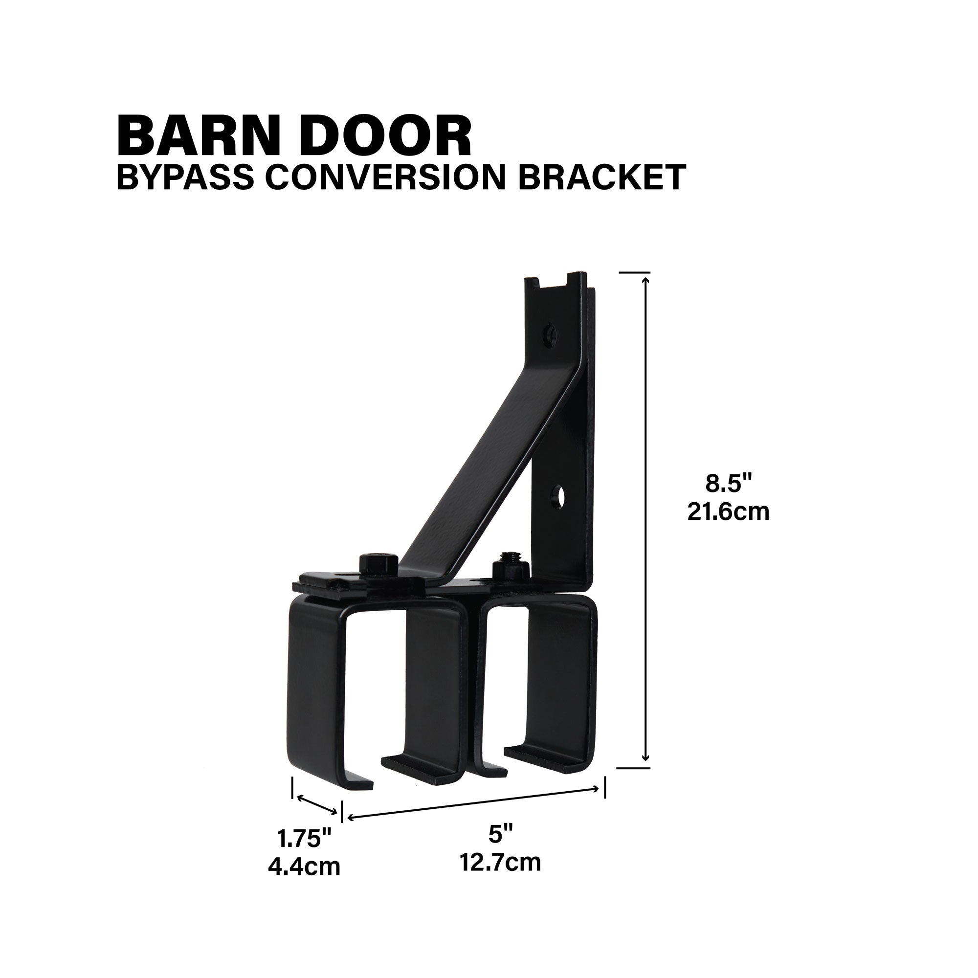 - Conversion bracket turns barn doors into bypass sliding doors
