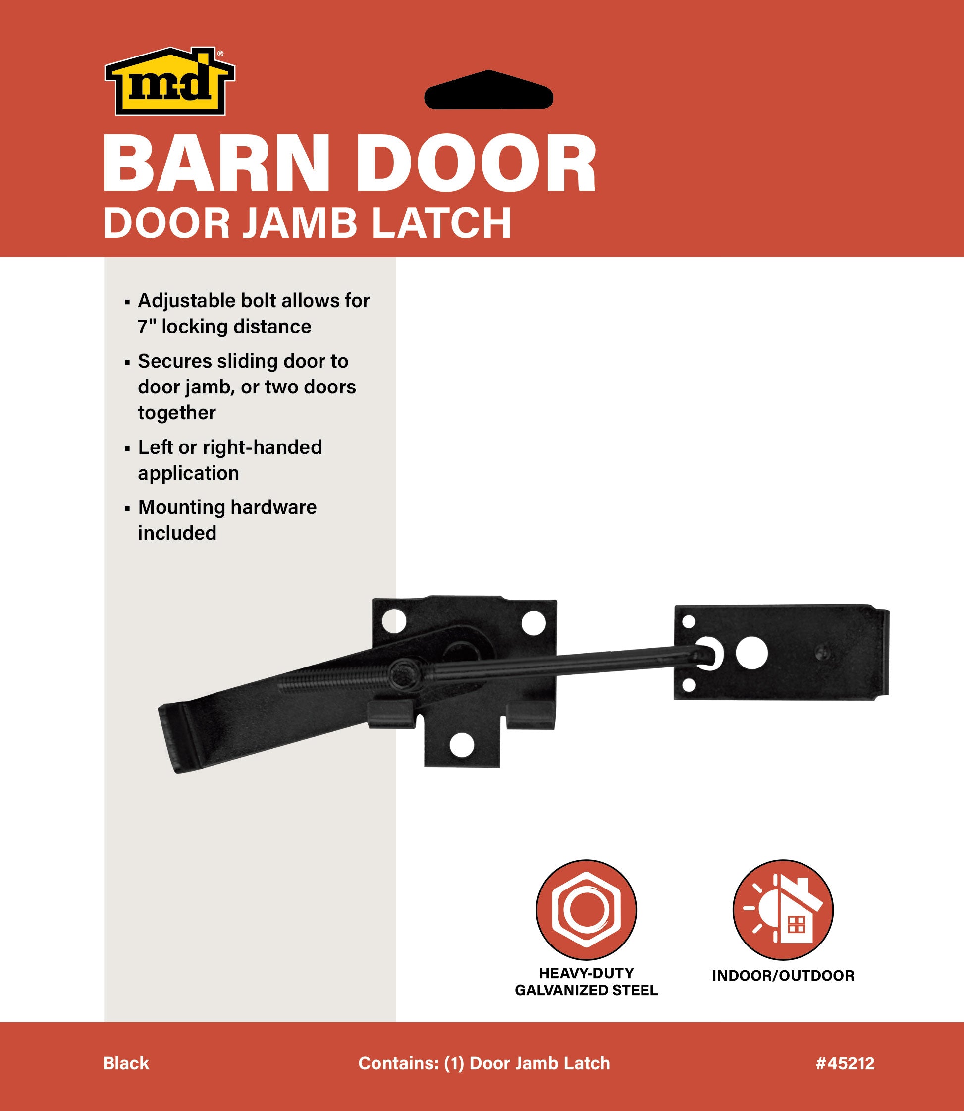 M-D Building Products Door Jamb Latch. Designed to latch two doors together, or a door directly to door jamb. Adjustable bolt allows for up to 7" of locking distance. Left of right-handed application.