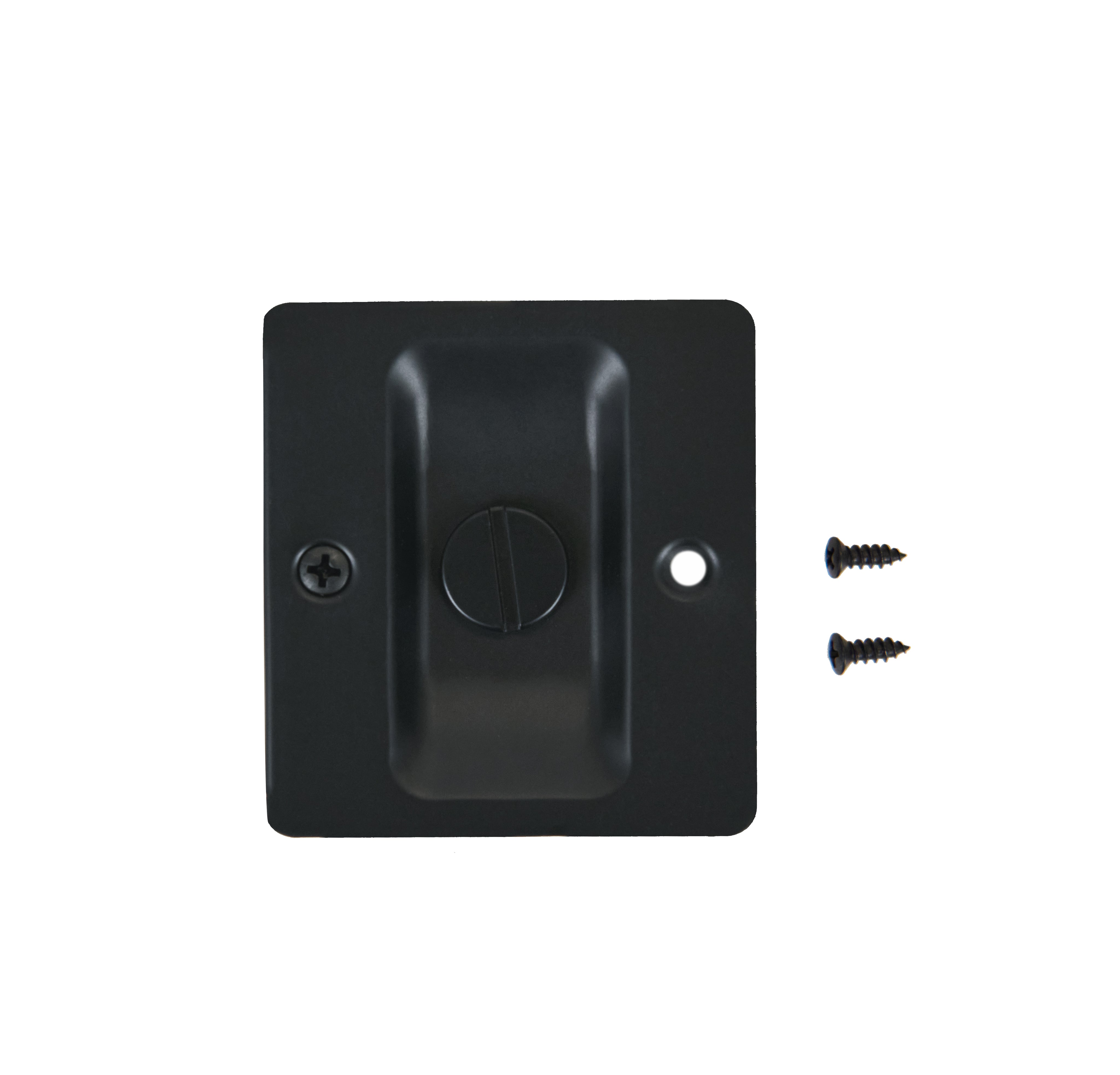 M-D Building Products square privacy pocket door pull. Steel construction and easy installation. Use on interior pocket doors where privacy lock is required such as bathroom or bedroom. Compatible on doors 1-3/8" and 1-3/4" thick. 2-3/4" mortise required on door panel for installation.